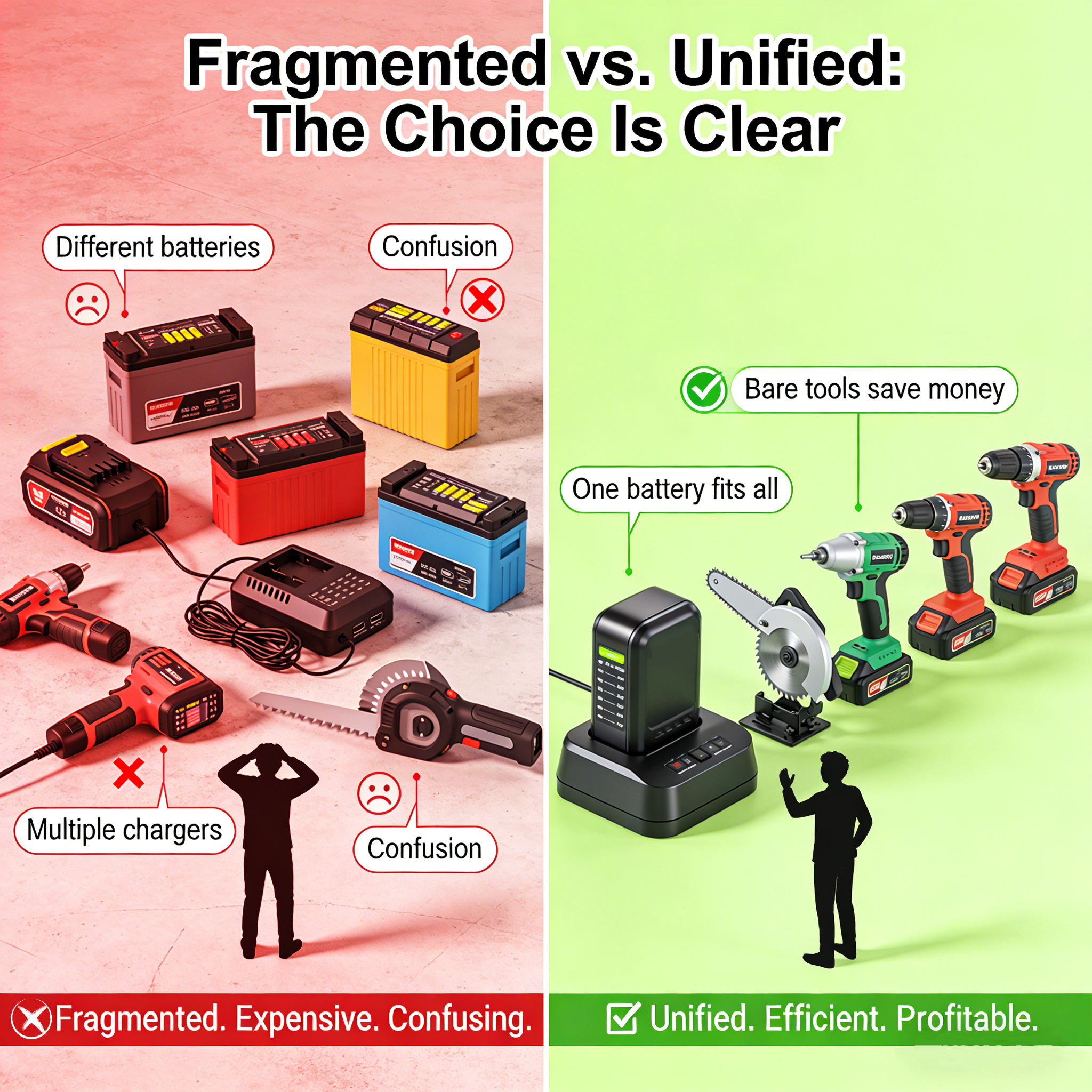 For users, it means a drawer full of different chargers, a shelf of incompatible batteries, and the frustration of reaching for a tool only to find its specific battery is dead. For dealers, it means complex inventory management, confused customers, and missed opportunities for cross-selling and brand loyalty.